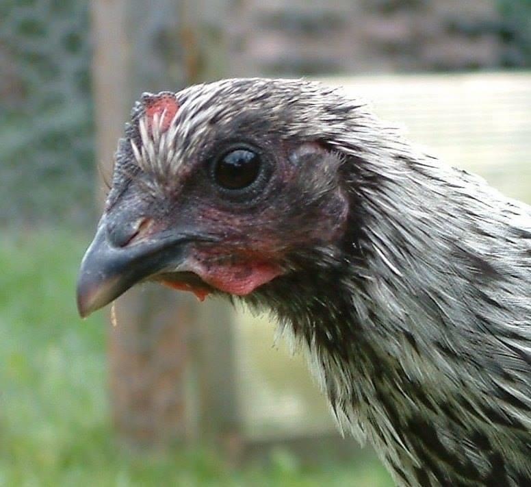 • Skull should be fine. Beak short and well curved. Dark eyes large and bold. Comb single, upright, of medium size, well serrated and with a firm base. Face smooth and fine. Ear-lobes small and oval. Wattles long and fine. The neck of medium length, abundantly covered by hackle.
