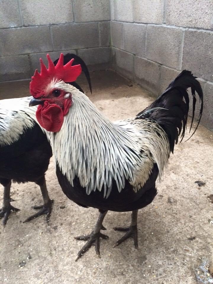 Males should have a clean breast with no silver flecks or lacing as shown on the photo. The breast should be full and rounded indicating good table qualities. Some silver lacing is acceptable on the females.
