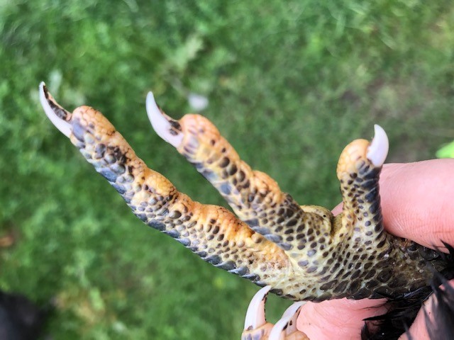 Legs and feet: Fairly short and set well back. Shanks free from feathers. Toes, four, well spread.
